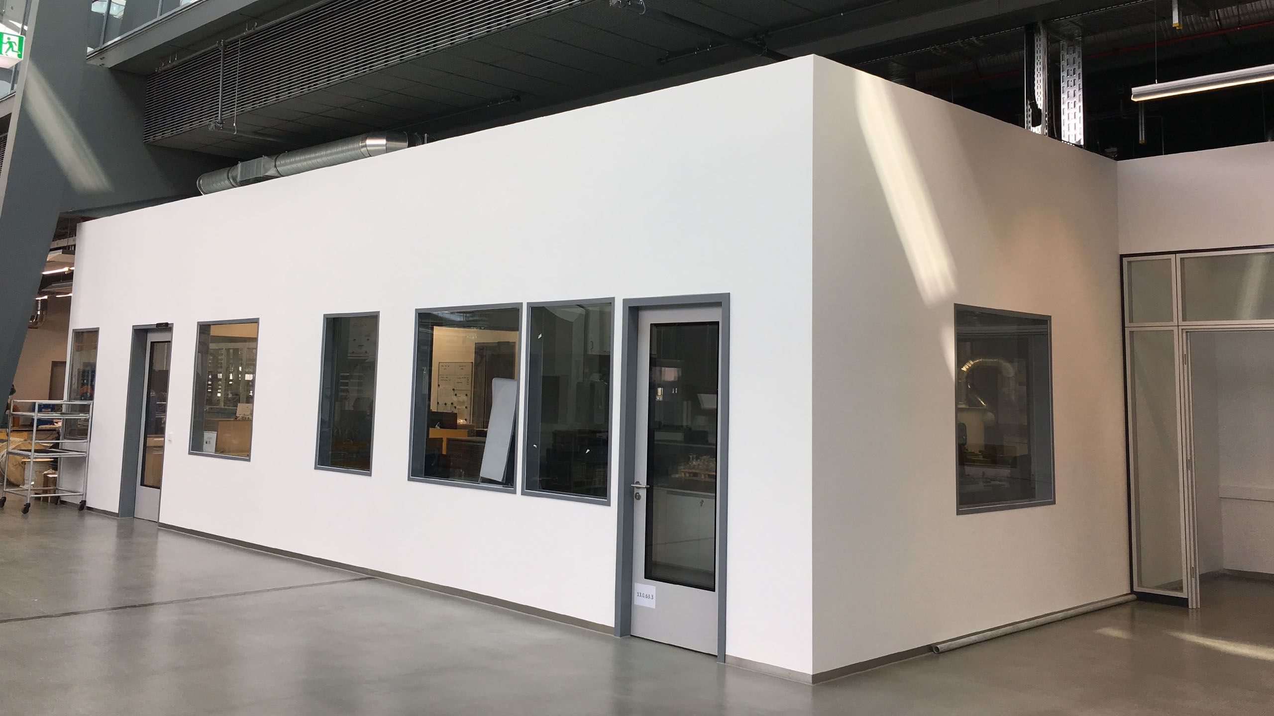 Raum-in-Raum Konstruktionen erschaffen ganz neue Möglichkeiten der Nutzung von großen Hallen und Bereichen. Abgrenzung und Raumnutzung in einem. (Gehen Sie mit der Maus über das Bild um den Vorher-Nachher Effekt zu sehen)