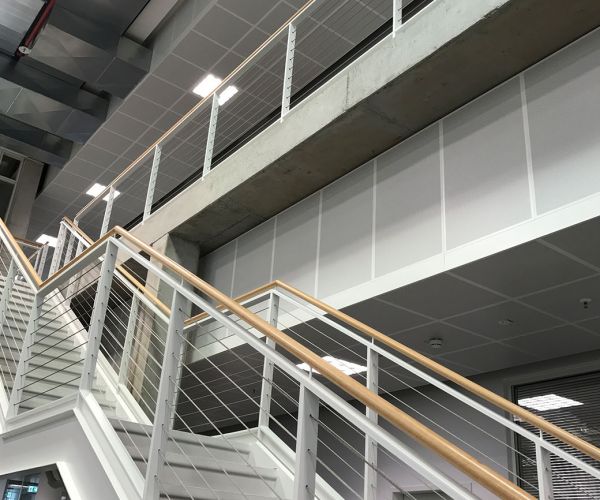 Wir sind der Profi im Akustikbau. Wir haben bei Viessmann im Zuge größerer Ausbau- und Modernisierungsarbeiten große Teile der Raumakustik im Gang- und Flurbereich modernisiert.