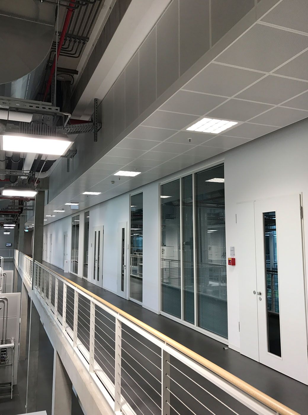 Wir sind der Profi im Akustikbau. Wir haben bei Viessmann im Zuge größerer Ausbau- und Modernisierungsarbeiten große Teile der Raumakustik im Gang- und Flurbereich modernisiert.